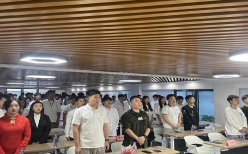 随着各位受邀嘉宾和信息工程学院团总支学生会新老成员的入场;全体师生歌唱中华人民共和国国歌《义勇军进行曲》,中华人民共和国国歌贯穿了整个大会现场!