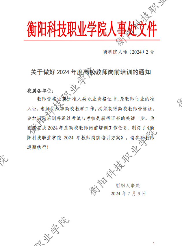 衡科院人通〔2024〕02号关于开展我院2024年高校教师岗前培训工作的通知