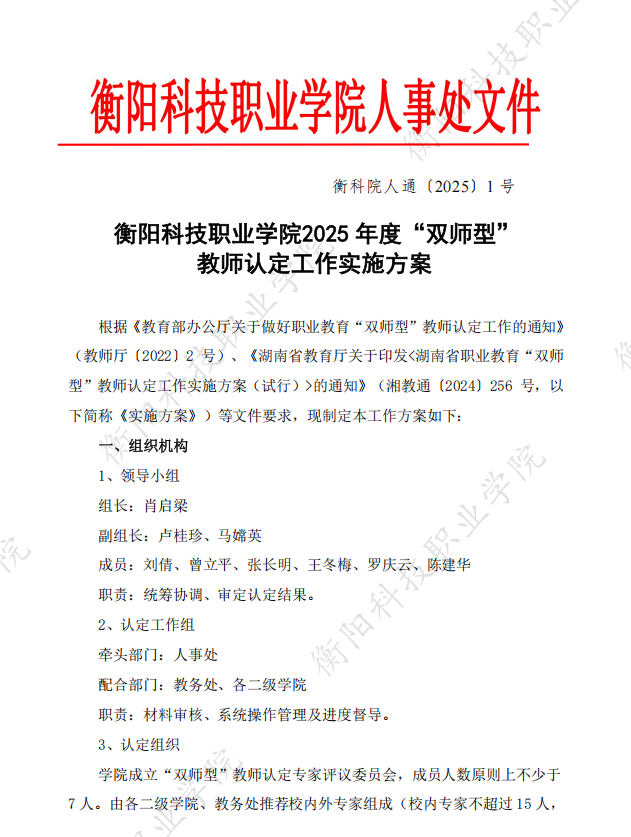 衡科院人通〔2025〕01号2025年度“双师型”教师认定工作实施方案
