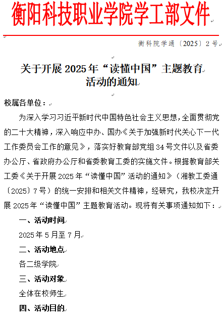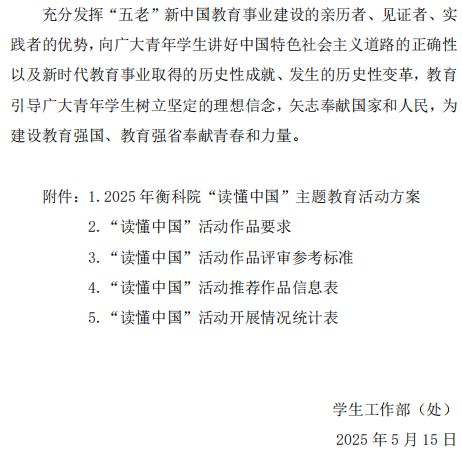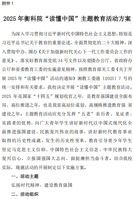 衡科院学通 2025年 2号文件通知 关于开展 2025 年“读懂中国”主题教育活动的通知