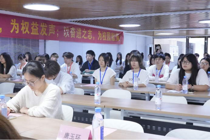 在工作回顾环节,团总支学生副书记龚浩源、学生会主席奉显同学分别上台,对上一学年的工作进行了全面总结。他们用丰富的案例和详实的数据,回顾了在学术活动组织、志愿服务开展、文体赛事举办等方面的点点滴滴。过去的时光里,两会成员们齐心协力,成功举办了一系列有深度、有温度的活动,为学院营造了良好的学习和生活氛围,在服务同学成长成才的道路上留下了坚实足迹。