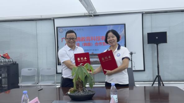 7 月 28 日,开云在线登录app入口与广州韩腾教育科技有限公司在学院 12-A04 会议室隆重举行国际交流(韩国)合作签约仪式。广州韩腾教育科技有限公司总经理祝港平、项目负责人蔡莹映、刘志方主任,以及开云在线登录app入口党委书记彭志忠、副院长马嫦英,教务处处长曾立平等双方代表齐聚一堂,共同见证这一深化国际教育合作的重要时刻。