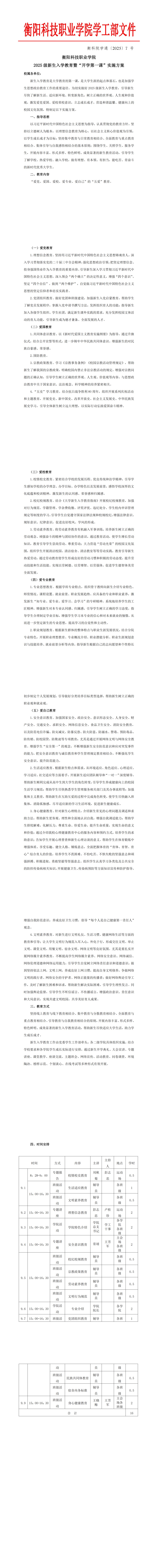 衡科院学通〔2025〕7 号 2025级新生入学教育实施方案