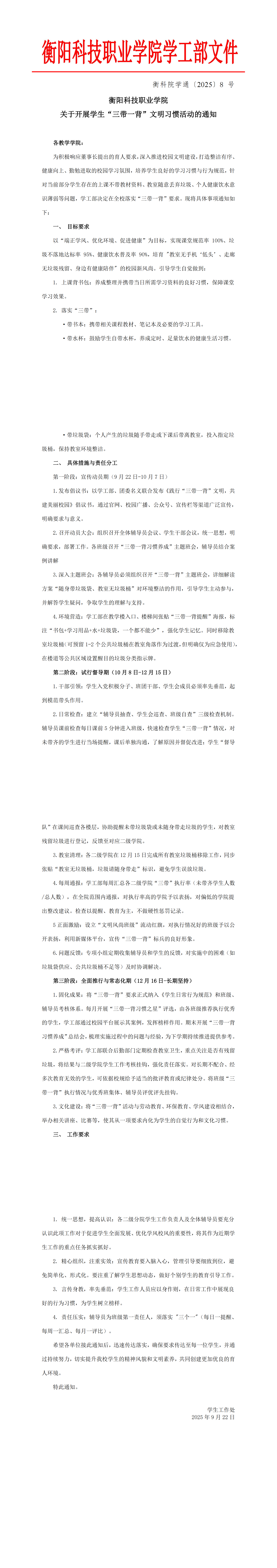 衡科院学通〔2025〕8 号 关于开展学生 三带一背 文明习惯活动的通知
