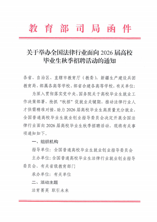 关于举办全国法律行业面向2026届高校毕业生秋季招聘活动的通知