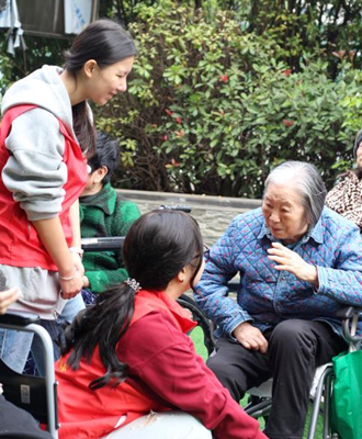 处处可见温馨的画面。以行动诠释敬老,以青春点亮夕阳