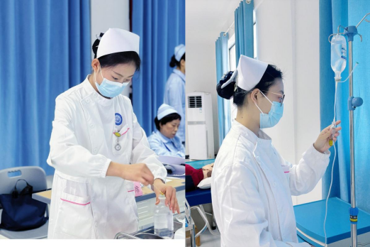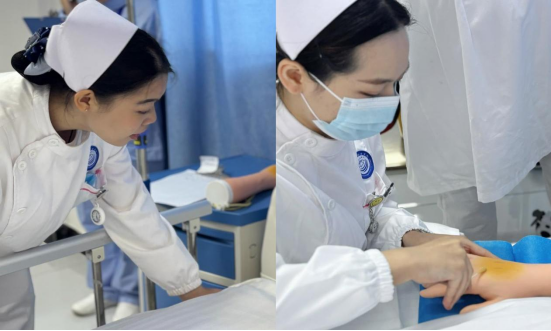 紧接着,比赛无缝衔接至“静脉输液”环节。团队成员需迅速转换角色,密切配合。从核对医嘱、评估患者、检查药液,到熟练地排气、穿刺、固定,整个过程要求“一针见血”,操作规范,同时还要体现出与“患者”的良好沟通和人文关怀。选手们沉着冷静,手法稳健,展现了未来“白衣天使”的卓越风范。