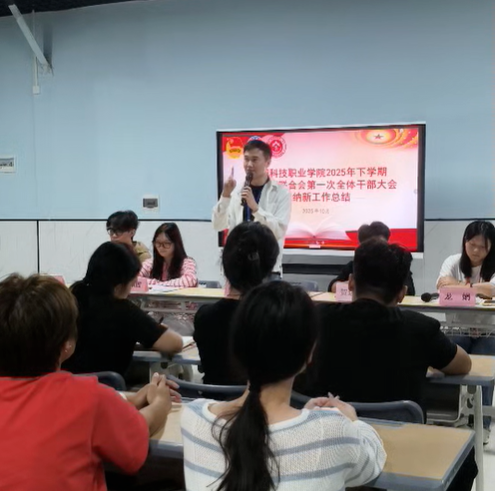 2025年10月16号在实训楼B106举行2025年下学期学生社团联合会第一次全体社团干部暨纳新工作总结大会