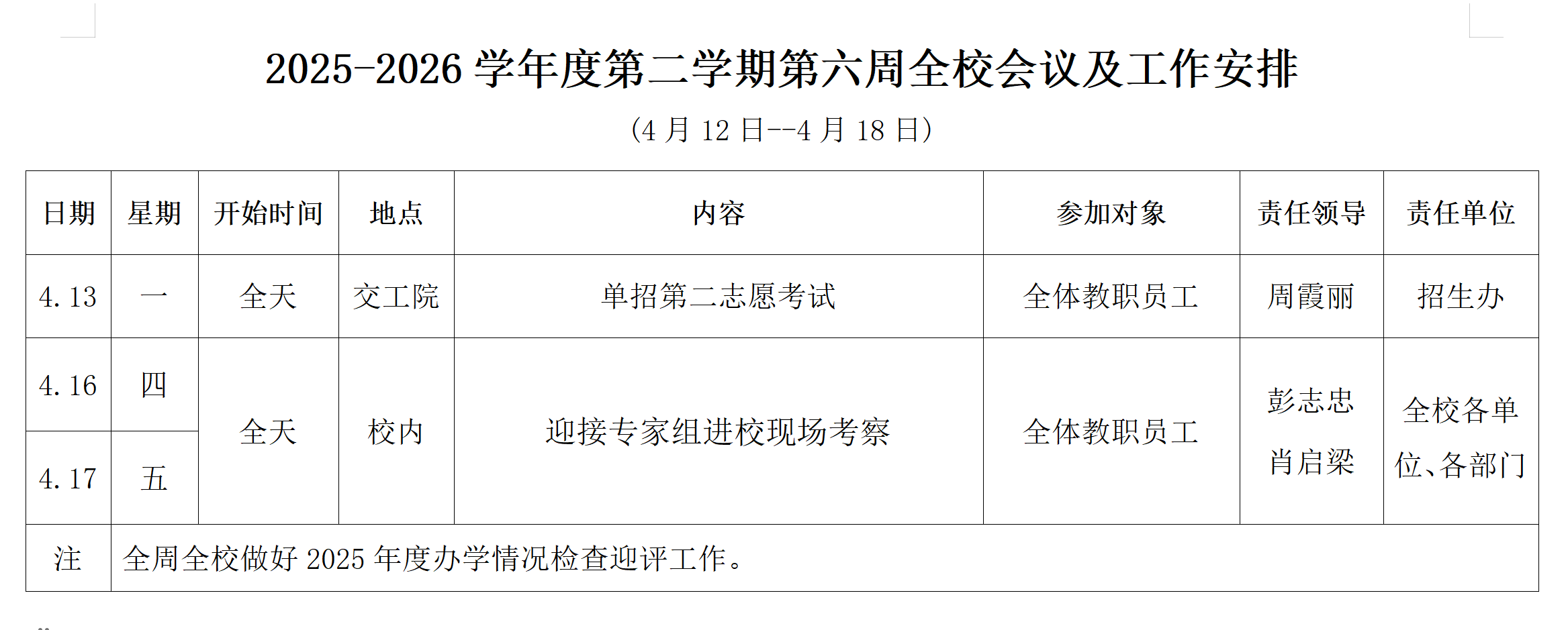 第六周工作安排