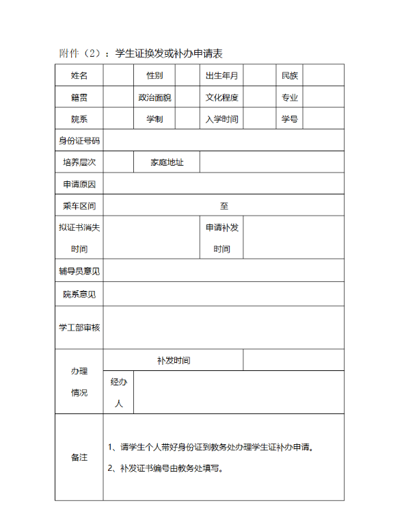 学生证换发或补办申请表