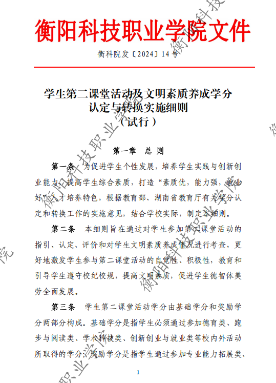 学生第二课堂活动及文明素质养成学分认定与转换实施细则(试行)